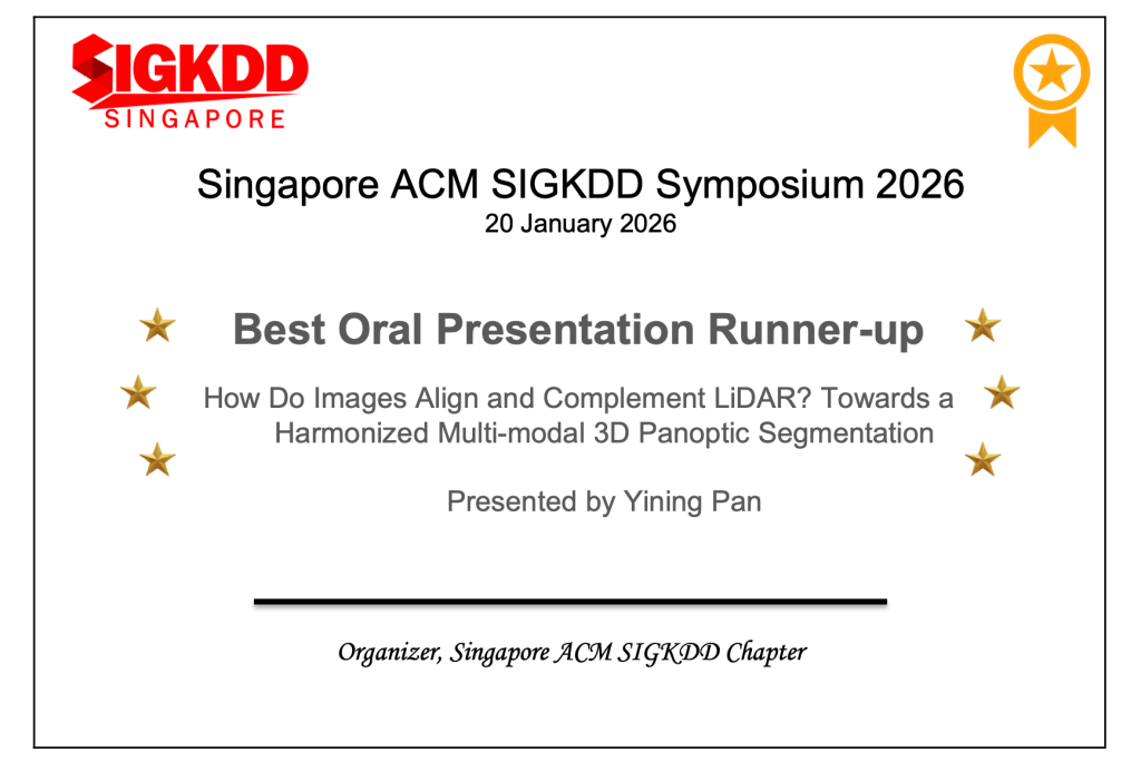 - How Do Images Align and Complement LiDAR? Towards a Harmonized Multi-modal 3D Panoptic Segmentation — ICML; Yining Pan, Qiongjie Cui, Xulei Yang, Na Zhao; Singapore University of Technology and Design