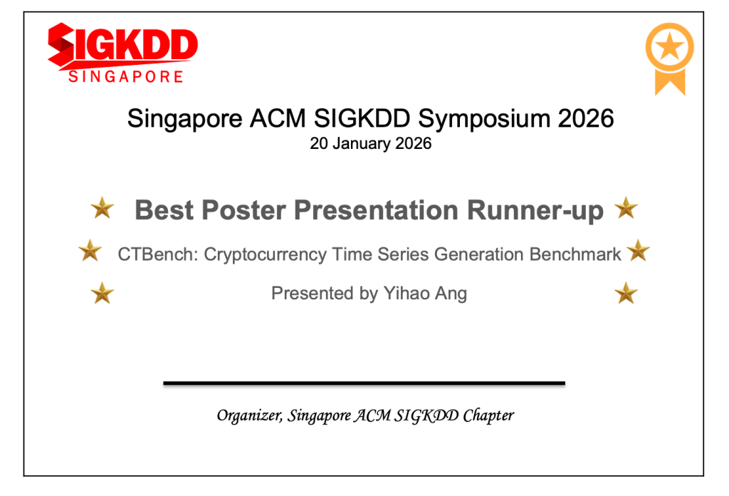 - Reasoning on Time-Series for Financial Technical Analysis — ICAIF Workshop (Best Paper); Kelvin J. L. Koa, Jan Chen, Yunshan Ma, Huanhuan Zheng, Tat-Seng Chua; National University of Singapore